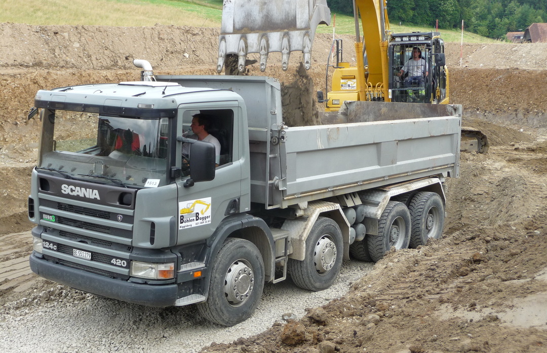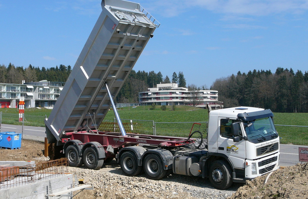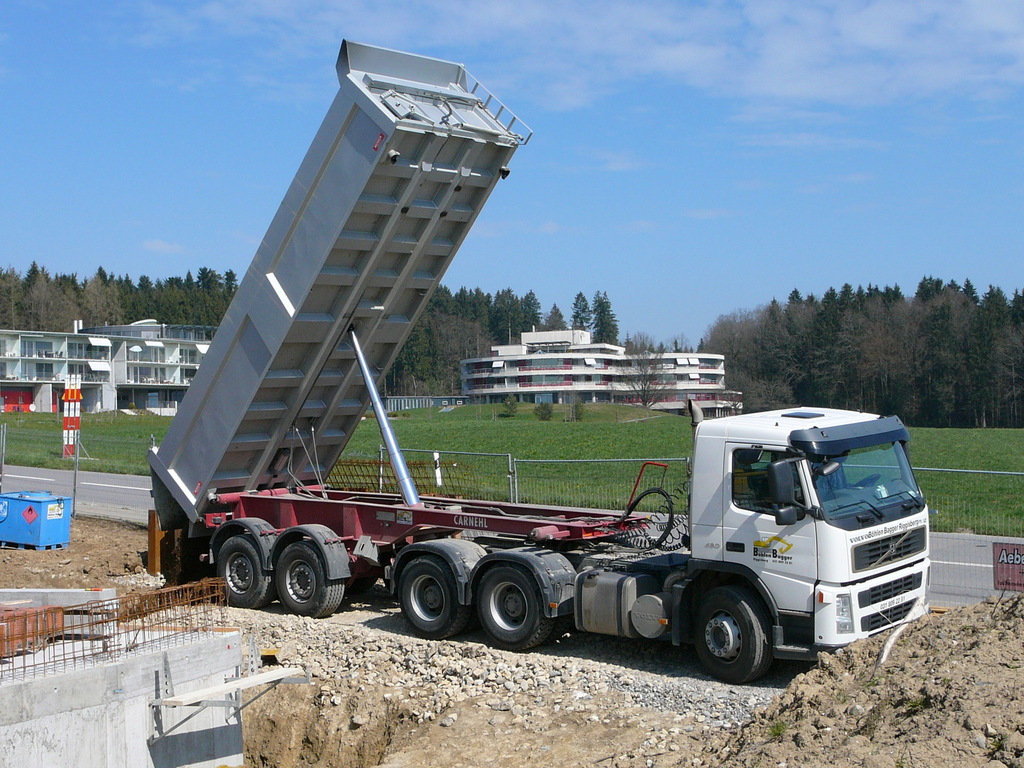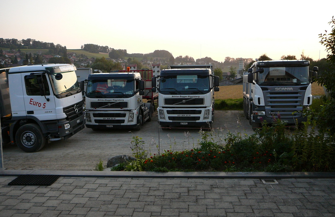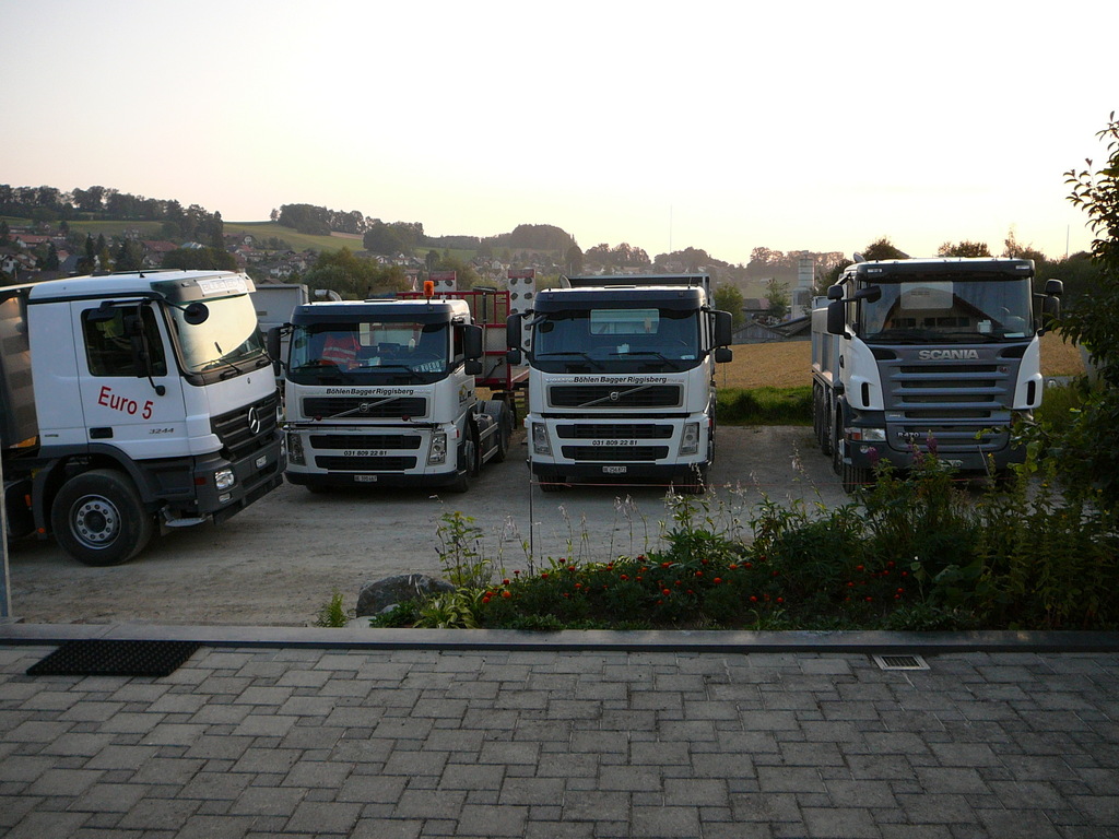 Die moderne LKW-Flotte mit Kipp-Sattel, Kipper, Hakengeräte, Welaki, Sattel-Tiefgänger und Baumaschinen-Taxi, wird teilweise auch durch die Optimal Land GmbH benutzt.