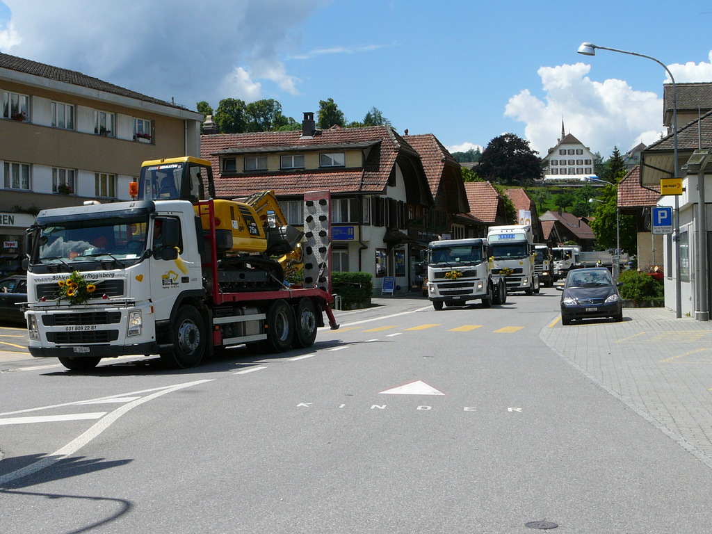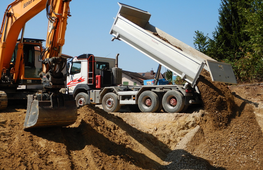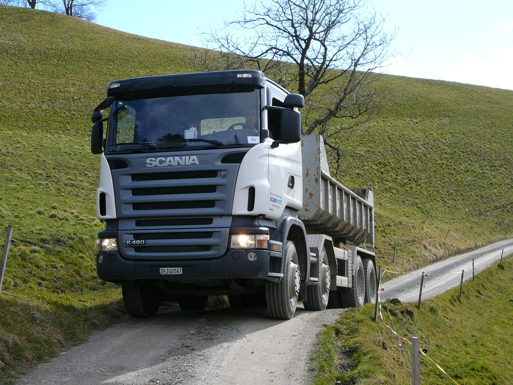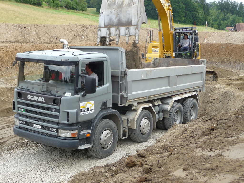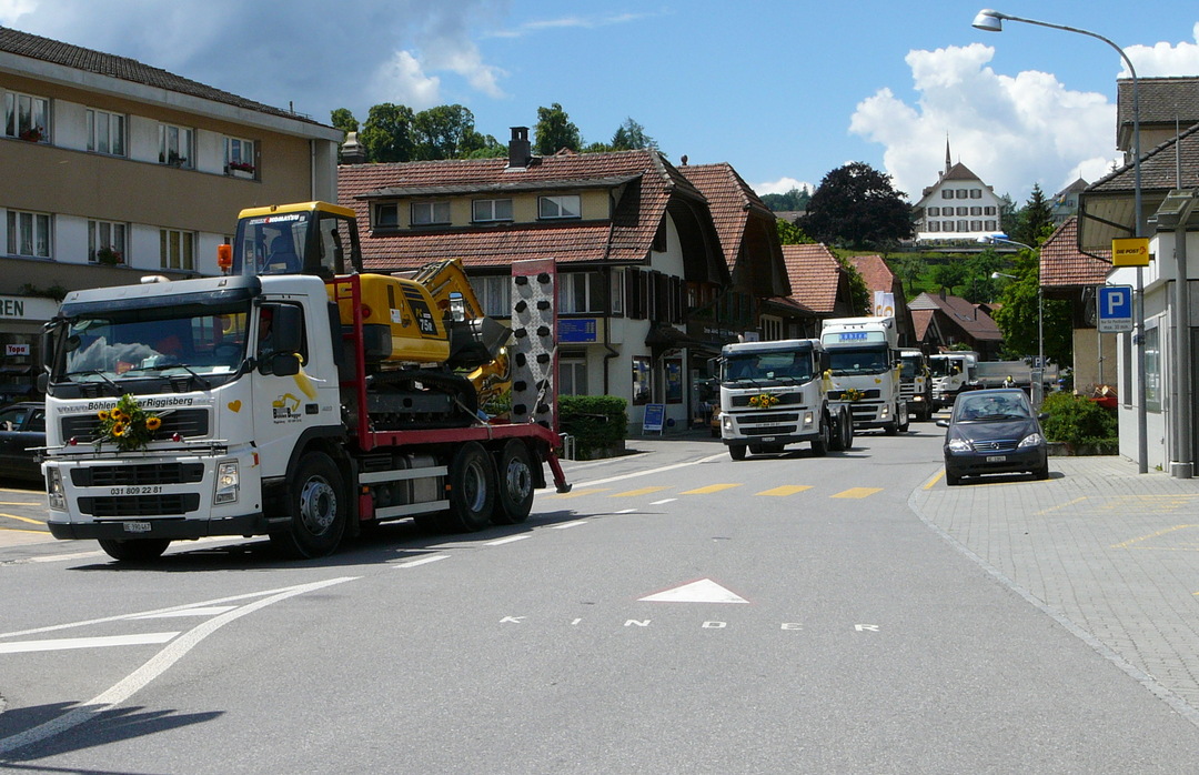 Die moderne LKW-Flotte mit Kipp-Sattel, Kipper, Hakengeräte, Welaki, Sattel-Tiefgänger und Baumaschinen-Taxi, wird teilweise auch durch die Optimal Land GmbH benutzt.